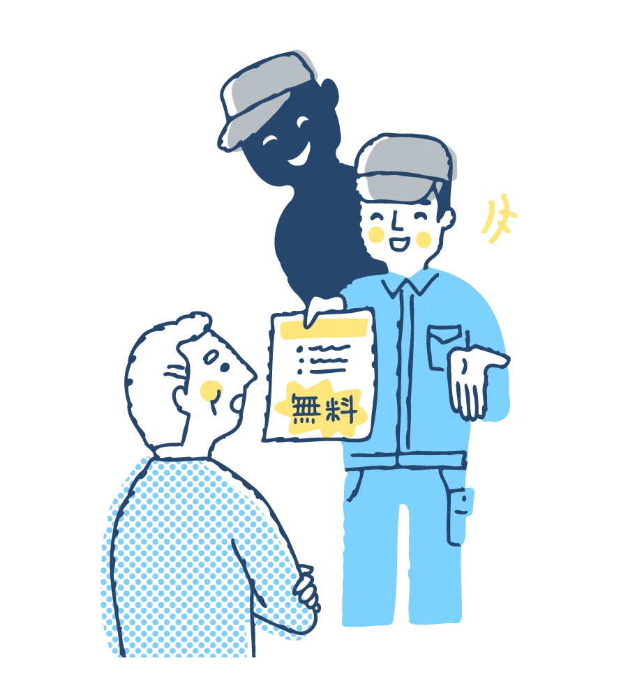 どりあえず見積もりだけでも大歓迎です。訪問見積もりだけでなく、写真で見積もりをすることも可能なので、忙しい方も見積もりだけご利用できます。